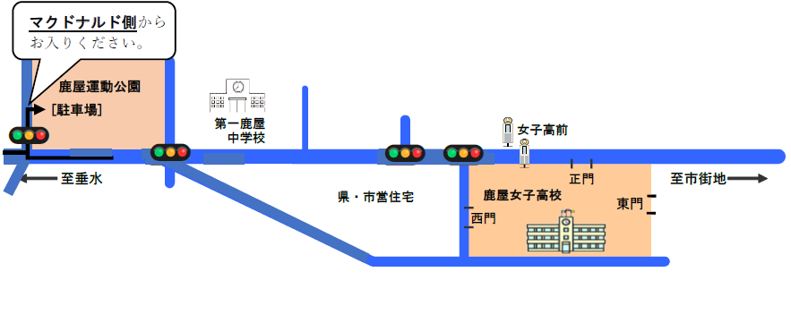 保護者等による送迎用駐車場については、鹿屋運動公園[西原グラウンド]駐車場(マクドナルド側)を御利用ください。