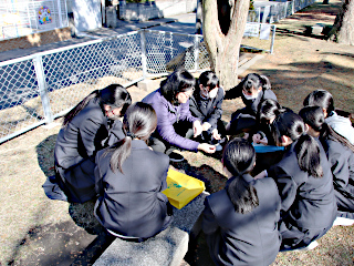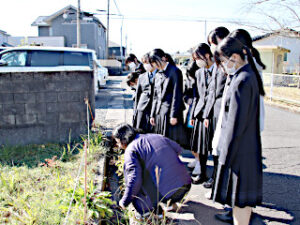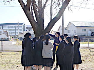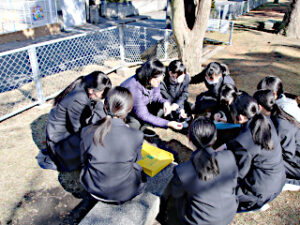 2年生の生物基礎の「植生」の様子です。 学校の側の「つつみ公園」とその周辺で,植物の種類や生育状況の観察をしました。 生徒達は,教科担任の説明を熱心に聴きました。