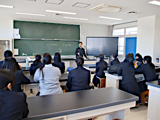 あす17日(土)とあさって18日(日)は大学入学共通テスト。 3年生の共通テスト受験生は,4限目に受験の説明と諸注意を受けた後,試験会場の鹿屋体育大学へ移動し,割り当てられた棟や教室,控室の場所を確認しました。