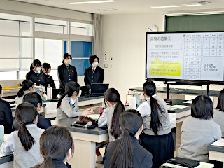 きょうの2限目に,理科教科の普通科3年生課題研究発表会が行われました。 普通科の3年生の3つのグループが,理科の授業でそれぞれ調べてきた研究の内容を,発表しました。 理科の学術的な研究結果が発表され,発表を聞いた生徒たちは,意見を活発に交わしました。 明日は,残りの3グループが発表を行います。
