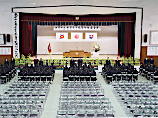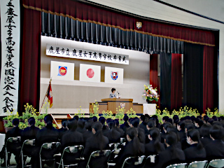 きょうの午前,3年生の同窓会入会式が行われました。 同窓会会長のあいさつ,校長あいさつのあと,新入会員の代表があいさつをしました。 最後に同窓会役員と第68期幹事の紹介が行われました。