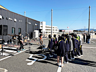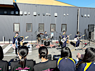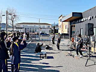 3/14(土)の午後に,軽音楽部によるライブイベント『屋女子大作戦2026~桜ノ舞台~』が開催されました。 軽音楽部のバンドが,多目的ホール駐車場で演奏し,大いに盛り上がりました。 ライブの最後は,「WALK INN FES! 2026 IN 桜島」の4/5(日)に出演が決まっているバンド“集中力葡萄党”がトリを務め,大興奮のなか幕を閉じました。