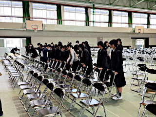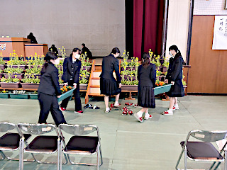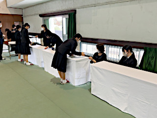 きょうの1,2限目に1・2年生が卒業式会場の設営を行いました。