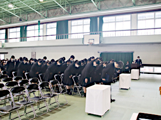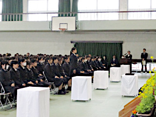 また,卒業式予行のあと表彰式が行われ,3年生の該当者に県教育委員会賞・皆勤賞など各賞が授与されました。