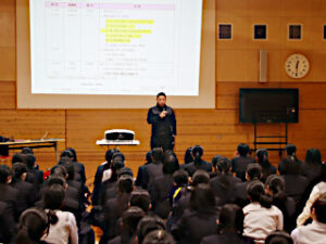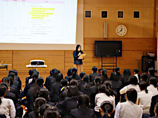 きょうの4限に多目的ホールにて,2学年修学旅行結団式が行われました。 はじめに,学校長と学年主任の先生から修学旅行の説明があり,つぎに,生徒支援部と養護の各先生から,旅行に参加するにあたっての,注意点や心構えが伝えられました。 生徒たちはしっかりと準備をし,明日からの3泊4日の旅行に元気に参加します。